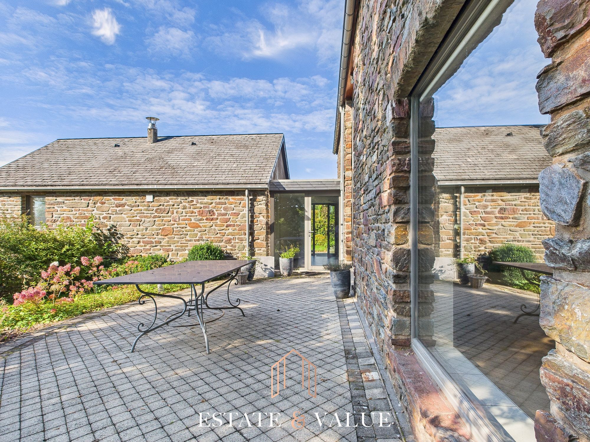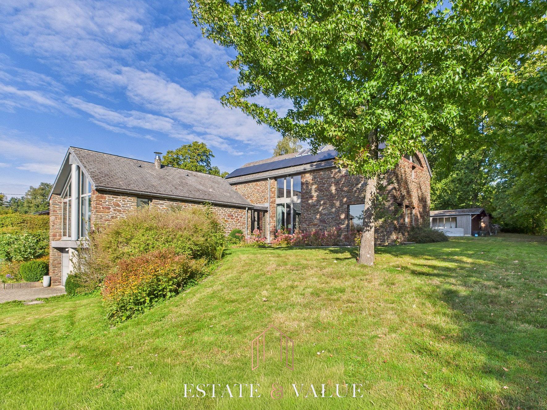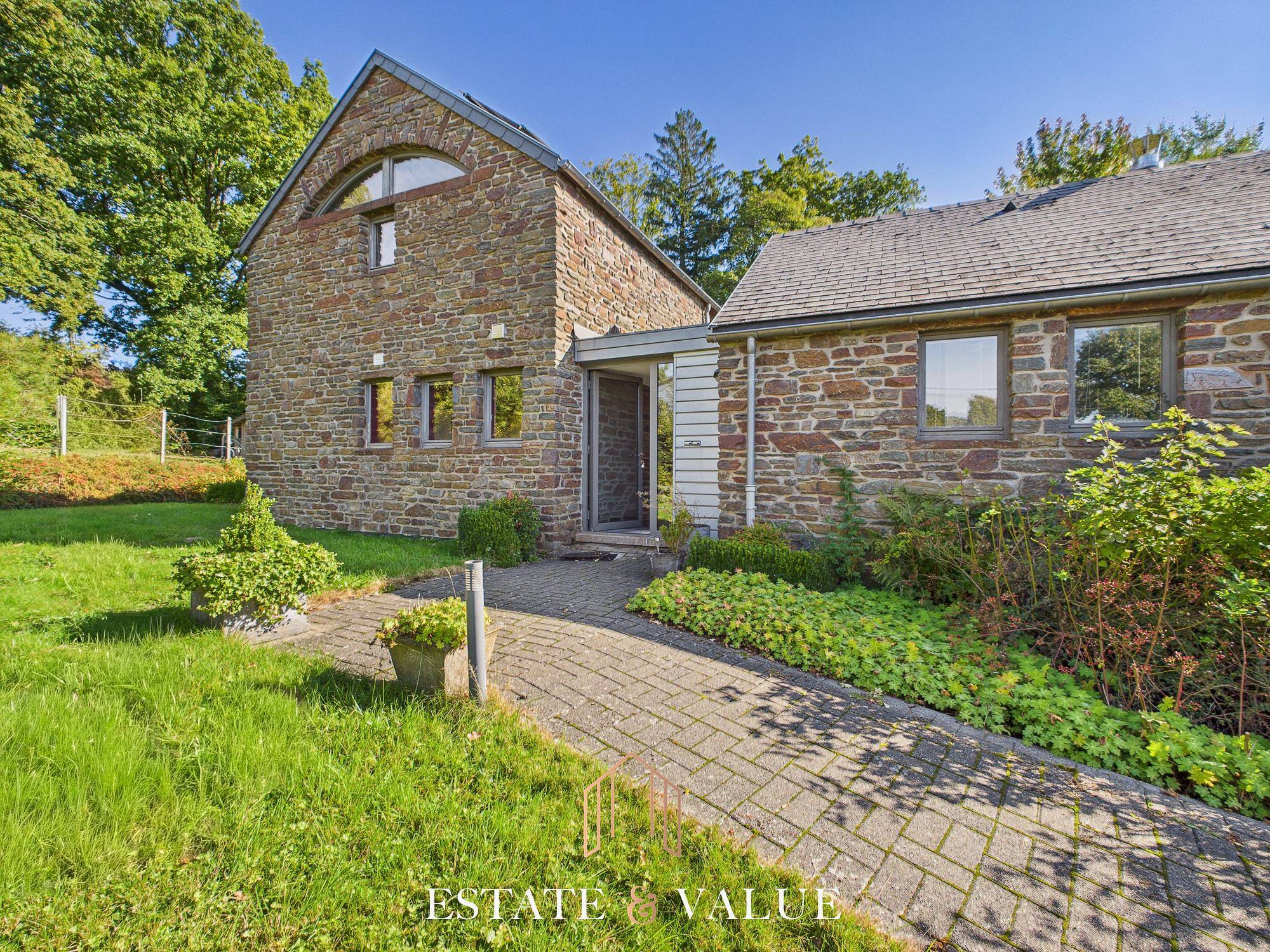 Estate & Value vous propose cette villa à l’architecture élégante avec ses façades de pierre bénéficiant d’une magnifique vue sur la campagne. Ce bien est situé dans un environnement calme et verdoyant, à quelques minutes du centre de Malmedy et des accès autoroutiers.