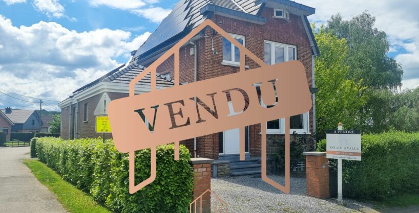Une belle terrasse orientée sud-ouest s’ouvre sur un agréable jardin entièrement clôturé. Une buanderie et une cave avec accès extérieur complètent ce bien. PEB C – Panneaux photovoltaïques.